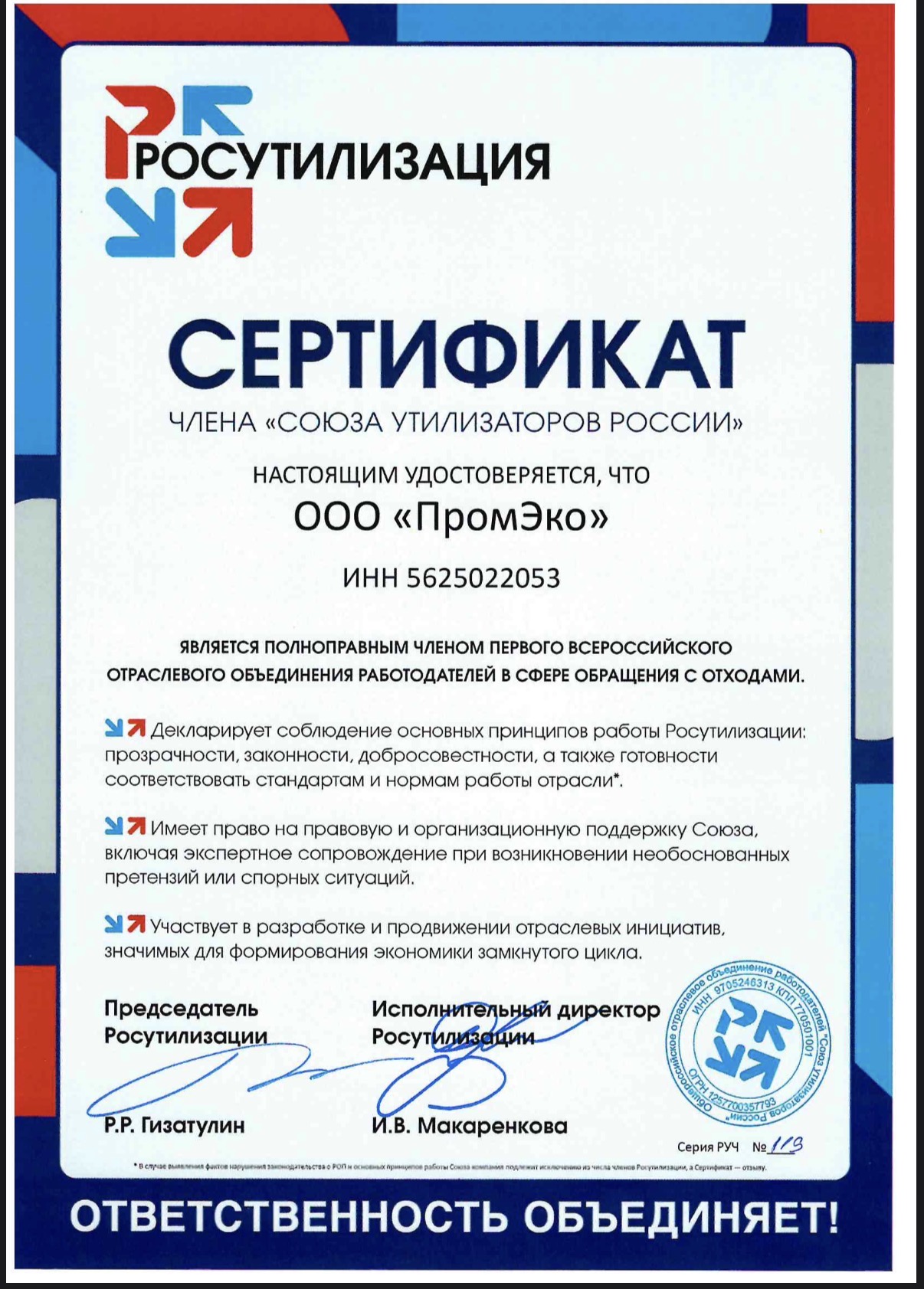 У «ПромЭко» в конце года произошло событие, которое приятно показать и партнёрам, и заказчикам: компания официально стала членом Союза утилизаторов России.